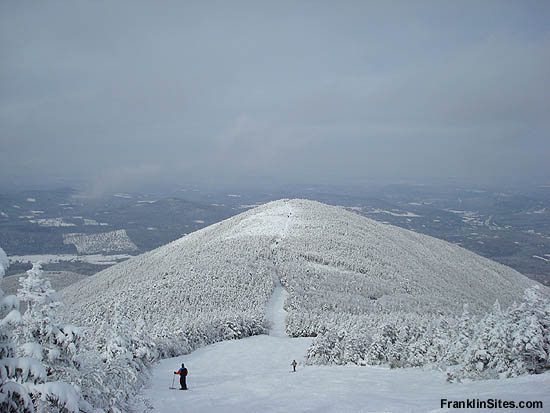 1932: Civilian Conservation Corps cuts first ski racing trail (Richard Taft Trail) on mountain, over NW summit. "A wide variety of turns lends excitement," notes a ski guidebook of the era. First descent is made in February 1933 by Austrian Sig Buchmayr, who is ski instructor at Peckett's inn at nearby Sugar Hill. In subsequent years Coppermine Ski Trail is cut, leading from Taft Trail down to Bridal Veil Falls and NH 116, along with adjacent Tucker Brook Ski Trail descending from Coppermine Trail into next valley to N.