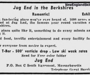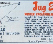 By the late 1960s, Jug End was advertised as a popular year-round resort. Winter activities included the alpine ski area, a toboggan chute (built on the ski lodge), a skating rink with music, and ice fishing.