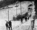 Around this time, the Pleasant Mountain Ski Club took charge of improvements. For the 1940-41 season a 300 foot rope tow was added for beginners, while a tow was reportedly installed near Highland Lake for a toboggan chute. Meanwhile, in the fall of 1940, the voters of the town of Bridgton appropriated funds to acquire the land on which the ski area was located. The Bridgton Chamber of Commerce operated the ski area that winter. In the spring of 1941, the town acquired the land and subsequently leased it to the chamber, which was which was developing plans to install an aerial tramway on the mountain.
