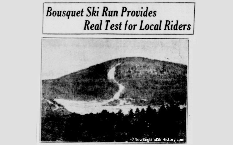 In the spring of 1934, Bousquet and the Mt. Greylock Ski Club publicized plans to use his mink farm as a slope for the club. Bousquet reportedly hired woodsmen to clear the Bousquet ski run with ski club members helping to haul brush and take out stumps. The Bousquet ski run was the "only modern trail" in Pittsfield with a width of 25 to 45 feet and a vertical drop of 570 feet. The bottom three quarters of the trail was completed in time for winter. Open slopes at the bottom were available for novices.