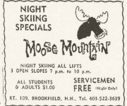Located east of Copple Crown Mountain in the southeast corner of the Lakes Region, Moose Mountain operated as a ski area for nearly three decades. Two decades after closing, the area began a gradual reemergence as recreational facility.