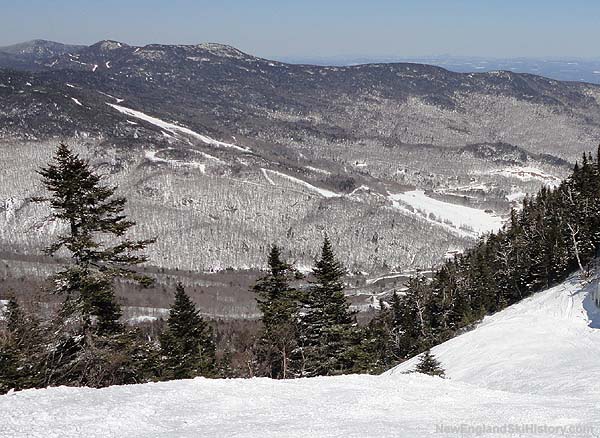 Big changes were in store for the following season, as the Spruce Peak double chairlift was removed after half a century of service. Its replacement was a shorter, but dramatically faster Leitner-Poma high speed detachable quad, named the Sensation. The new lift ends about 100 vertical feet lower than its predecessor, cutting off wind exposed terrain, as well as making the sometimes-official, often-unofficial connection to Smugglers Notch ski area a little less accessible.